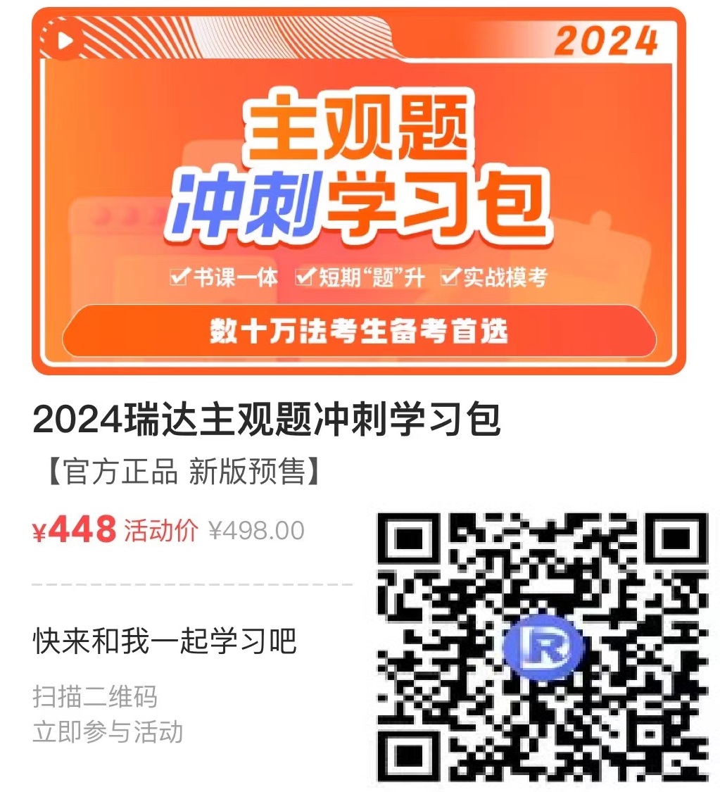 想要2024年法考一战通关,就要做好提早复习主观题的准备,先购买一套2024法考主观题冲刺包,等客观题考试结束,稍作休息后马上投入到主观题的复习之中,这样才能作为一只早早鸟领先一步!